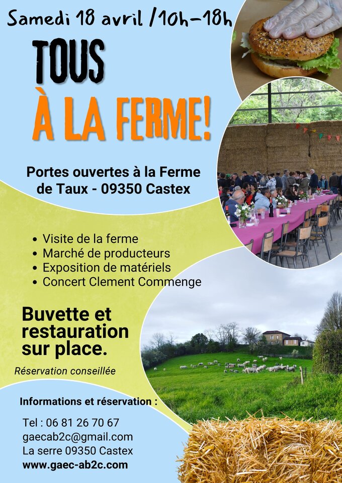 Tous à la ferme ! Portes ouvertes à la ferme de Taux Pour un moment de partage, de convivialité et de gourmandise. Venez nombreux !